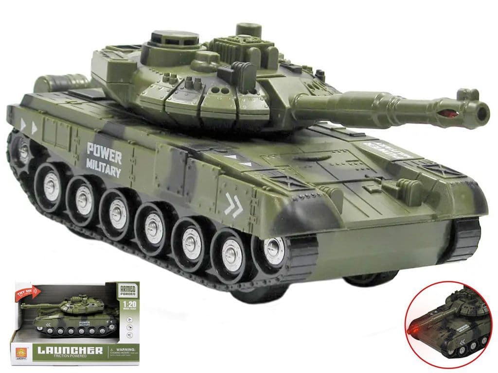Armed Forces Toy Army Tank With Battle Sounds & Gun Light Friction Powered 1:20 WY741A